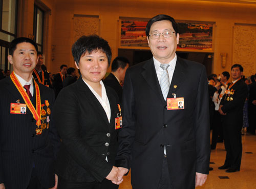 關(guān)霄梅與省總工會主席王悅?cè)A合影
