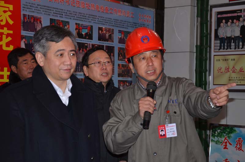 2013年12月31日,牡丹江市新任市委副書記、市長劉忻同志到牡丹江市工作當日晚8時許,來到牡丹江熱電有限公司視察指導工作并慰問熱電員工。副市長崔培元、秘書長趙士元、建設局長謝北寒等陪同視察。