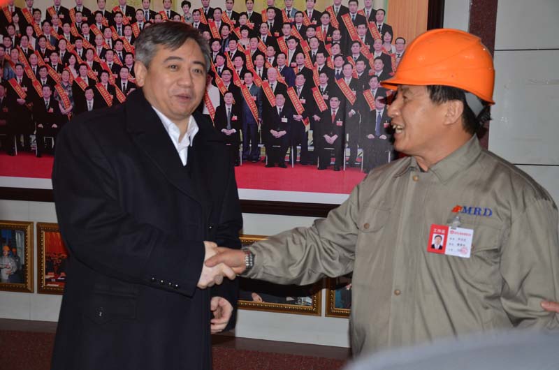 劉忻市長與副董事長、黨委書記宋道會親切握手劉忻市長親切稱呼黨的十八大代表、全國勞動模范關(guān)霄梅為女中豪杰